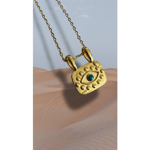 • Gold Aquamarine Eye Necklace