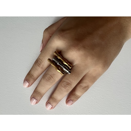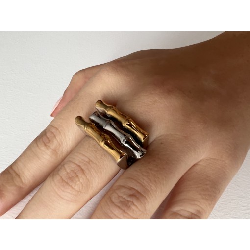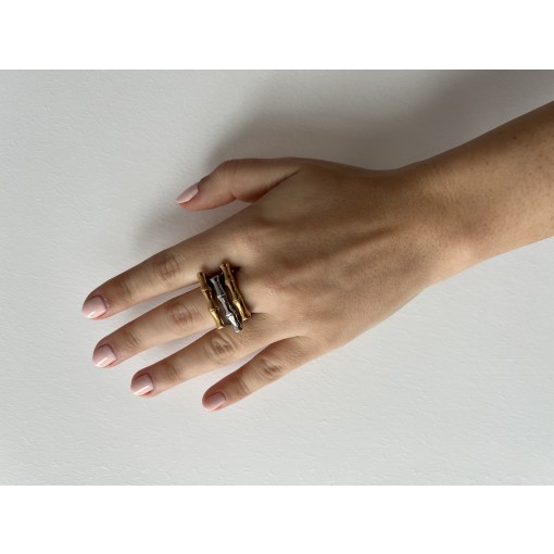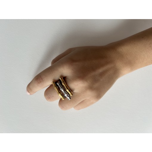 • Silver, Gold & Rose Wood Shape Ring