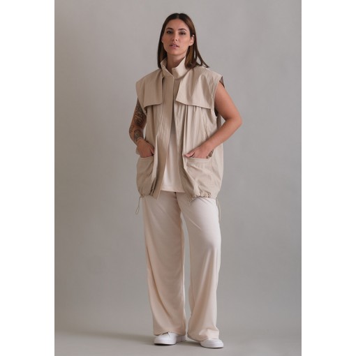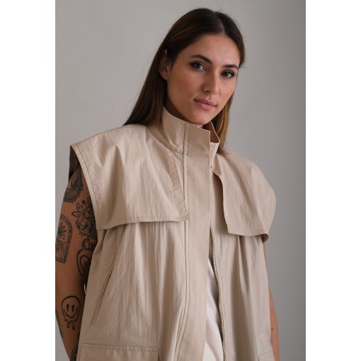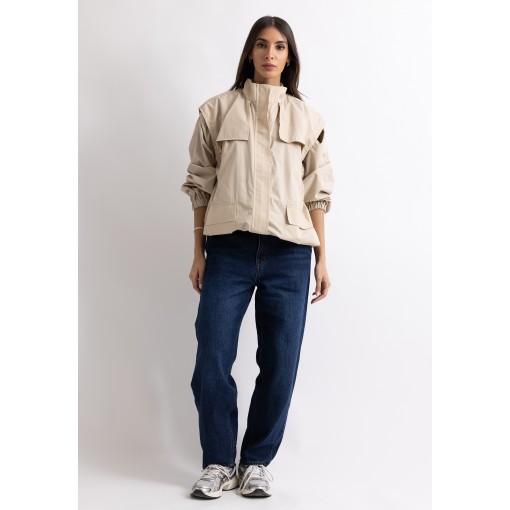 • سترة رياضية باللون البيج بأكمام قابلة للفصل