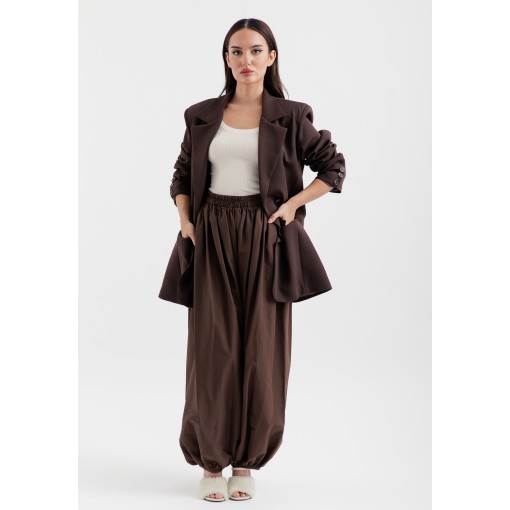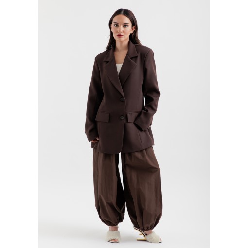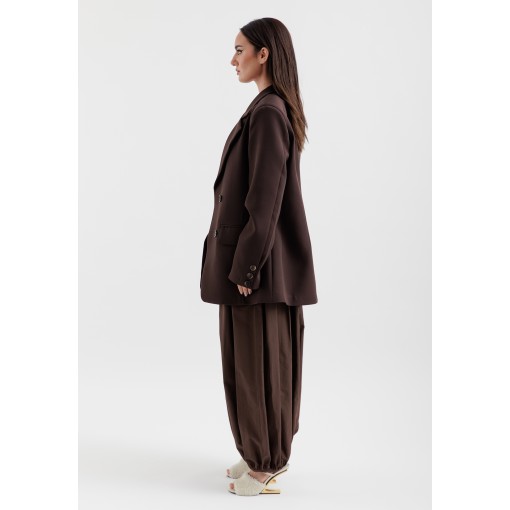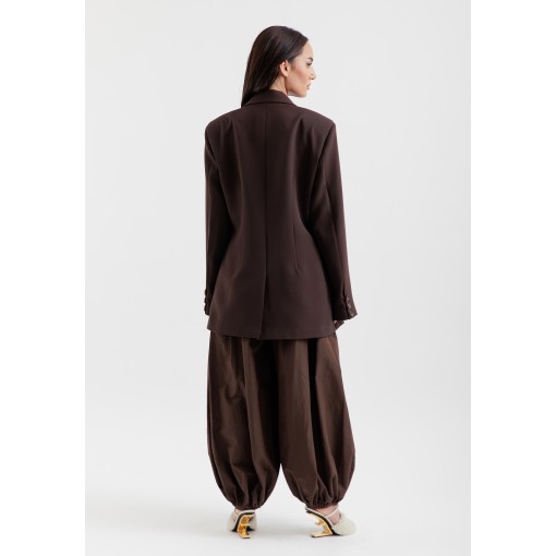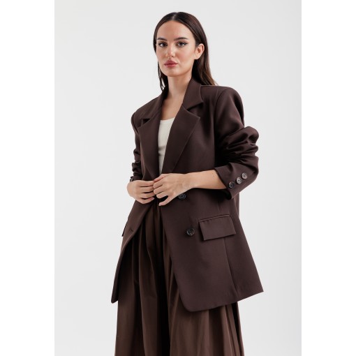 • brown crepe light weight blazer with oversized fit.