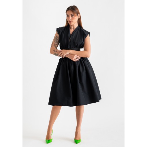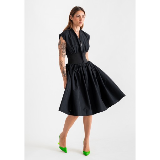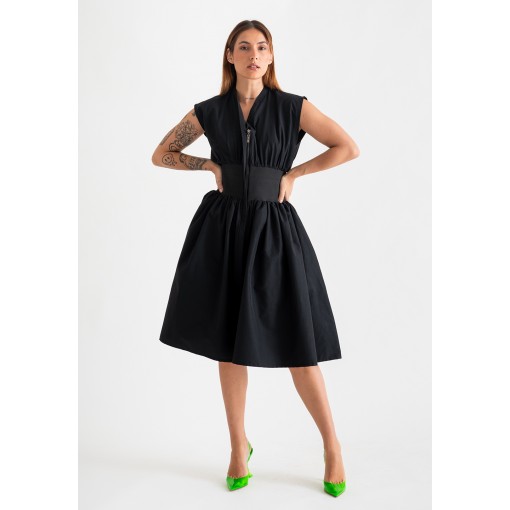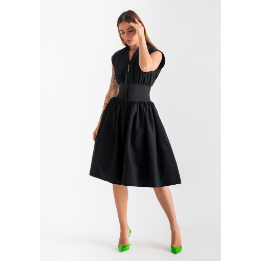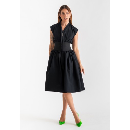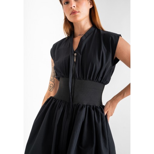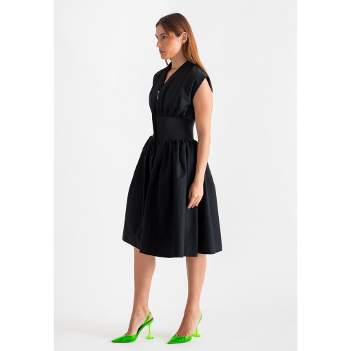 فستان أسود بمشد خصر مطاطي