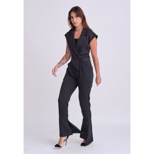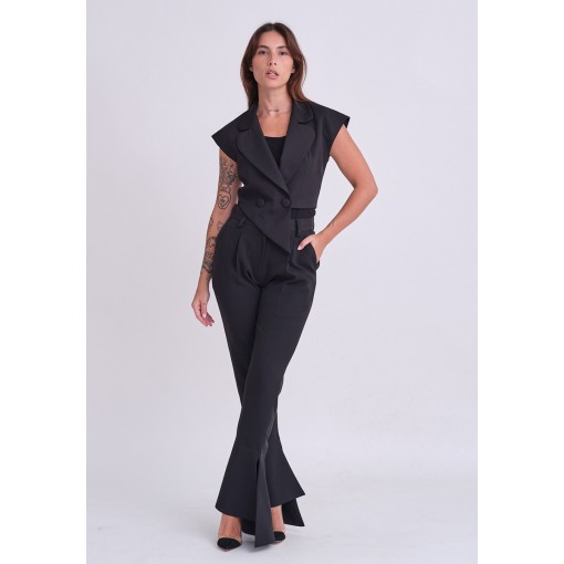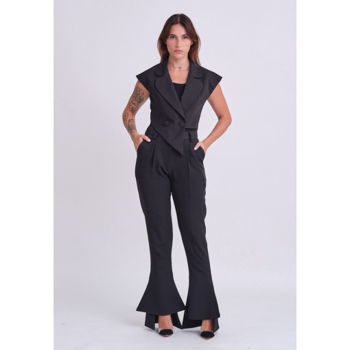 • بنطلون أسود فلير مع فتحة جانبية