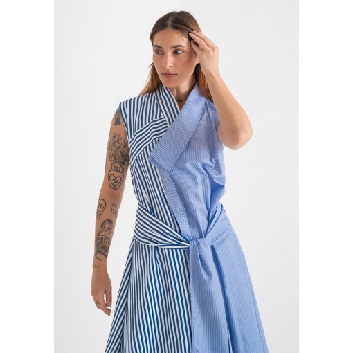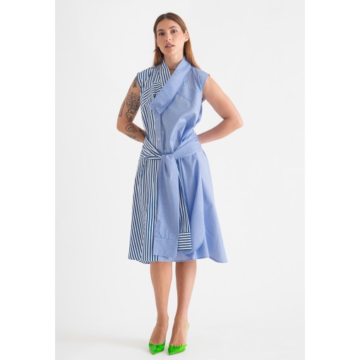 فستان ميدي صيفي أزرق مقلم