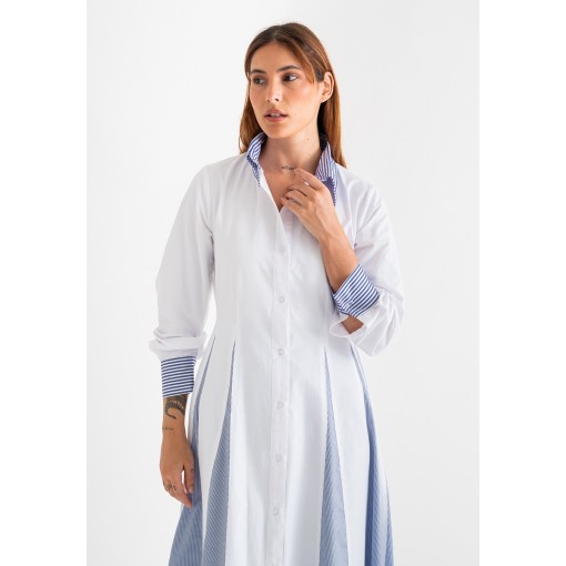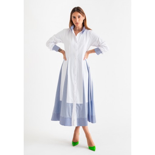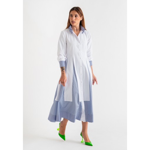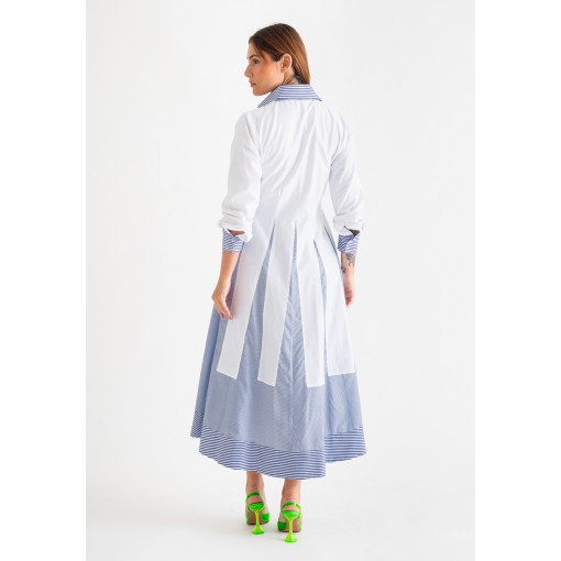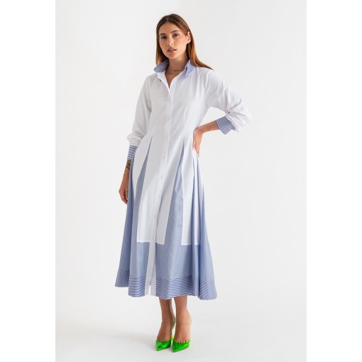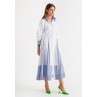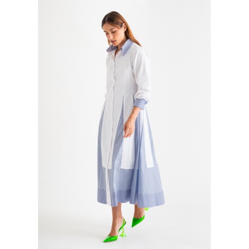 فستان بأكمام مخطط باللون الأزرق و برباط خصر
