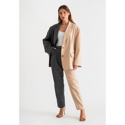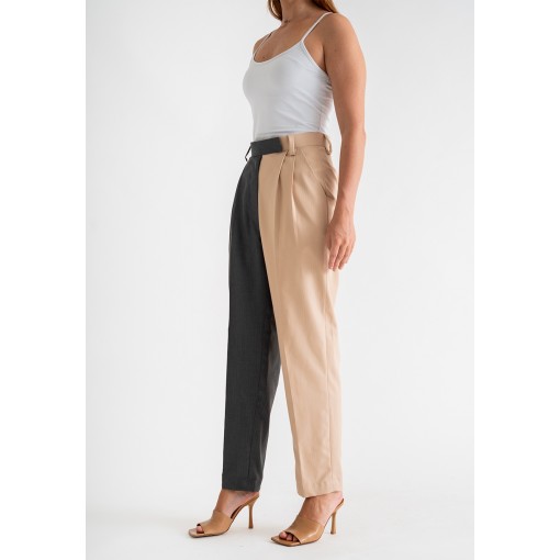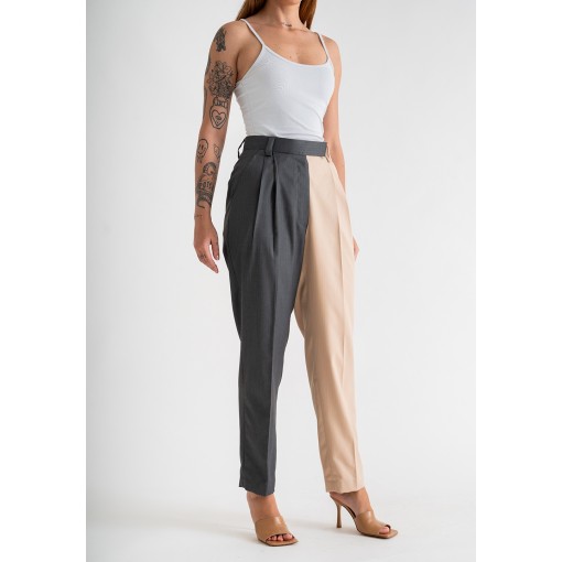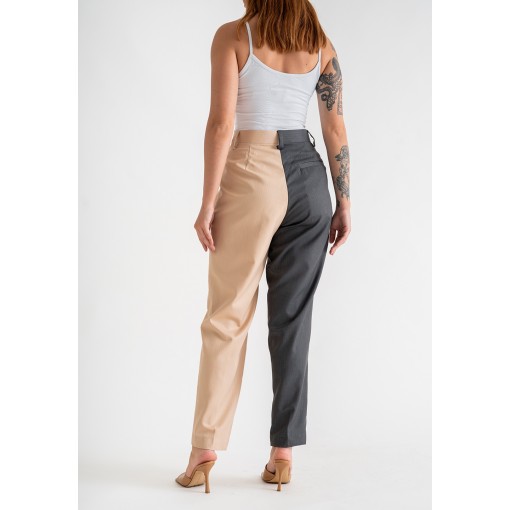 بنطال رمادي وبيج بتصميم نصف ونصف