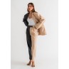 • بنطال رمادي وبيج بتصميم نصف ونصف