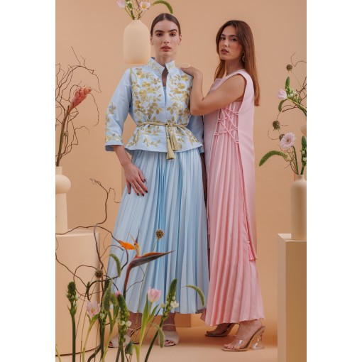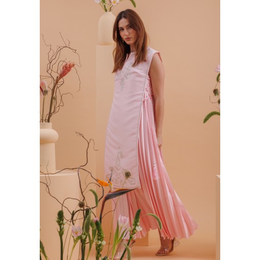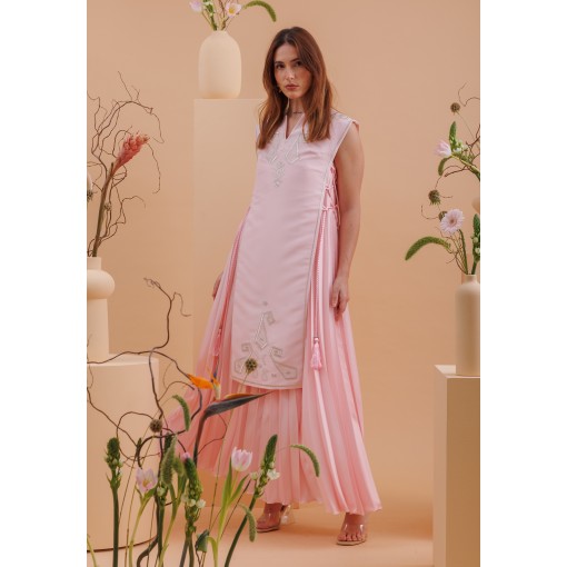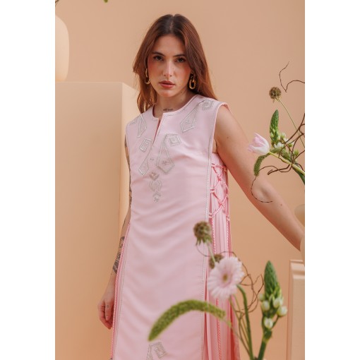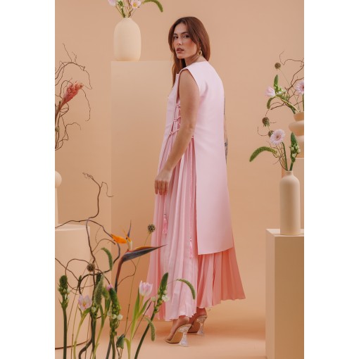 • فستان وردي بليسيه مع صديري وردي