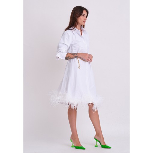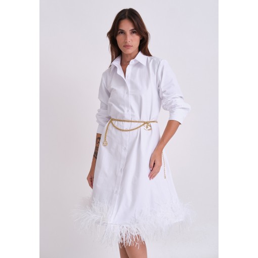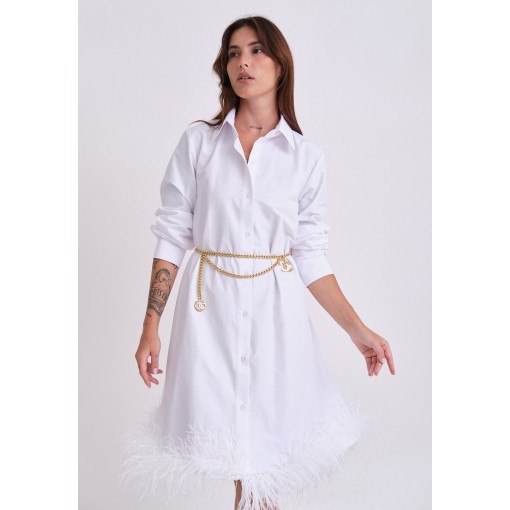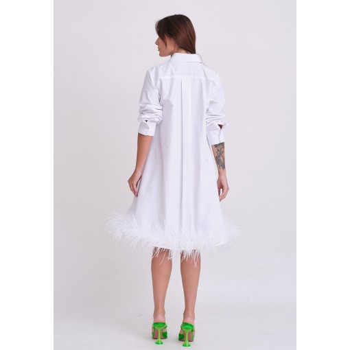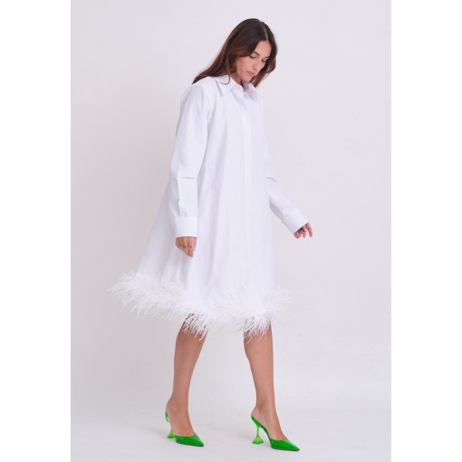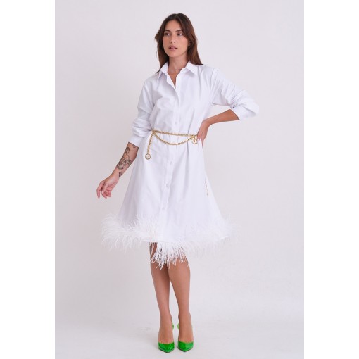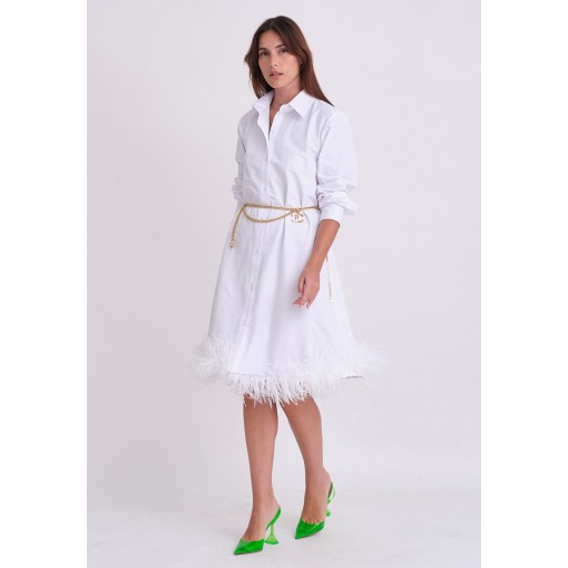 فستان قميص أبيض مزين بريش