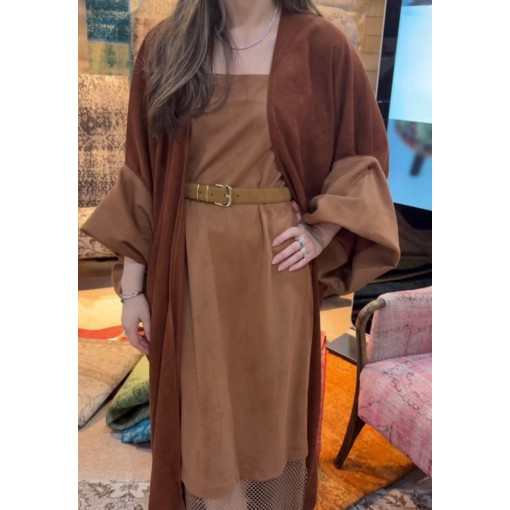 • المقاسات: من صغير إلى متوسط: الفستان: الصدر: 35، الخصر: 34، الطول: 55، //الغطاء: مقاس حر، الطول: 55