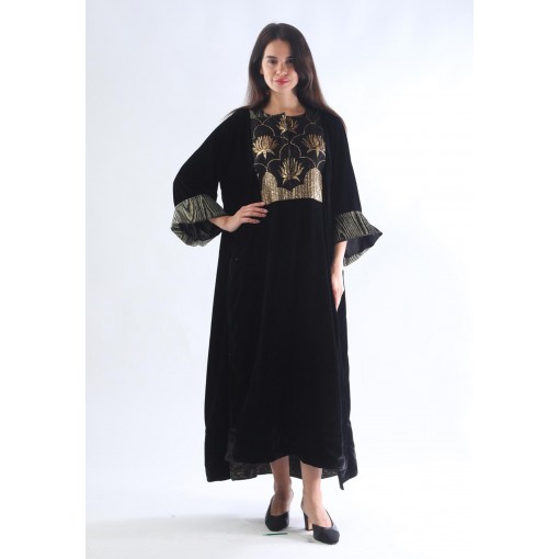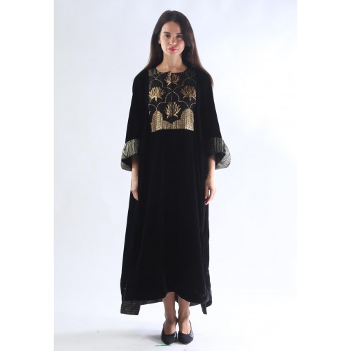 قفطان ملكي مخملي أسود مطرز بالزهور