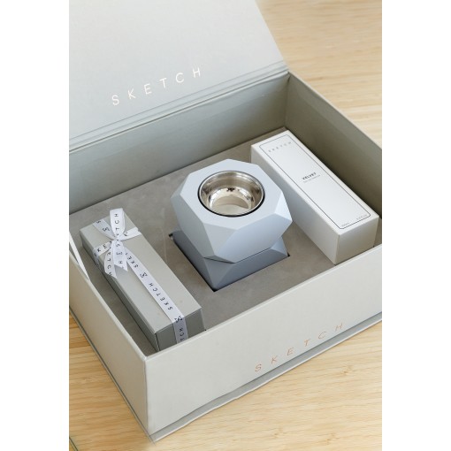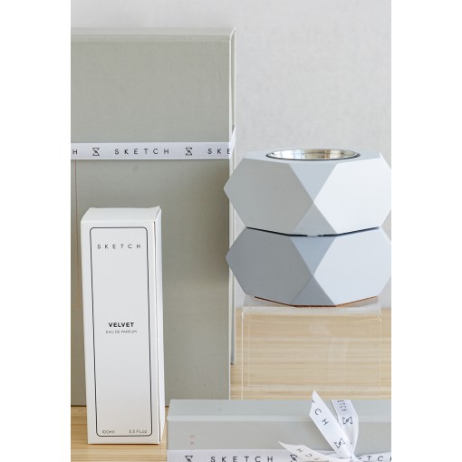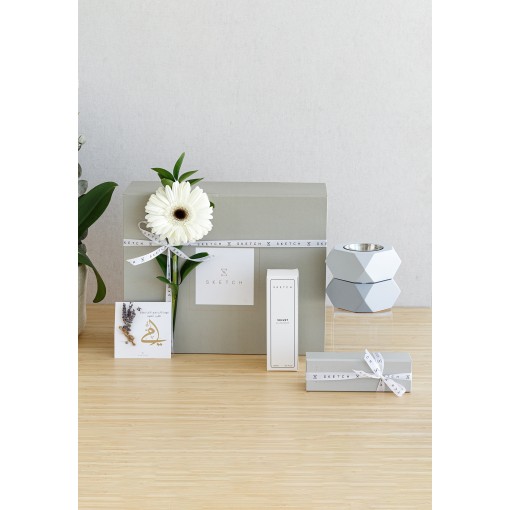 • هدية ثنائية من بخور وعطر باللون الرمادي.
