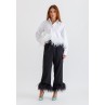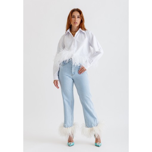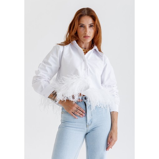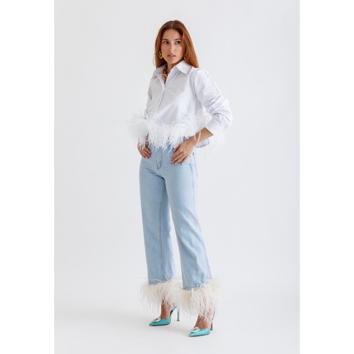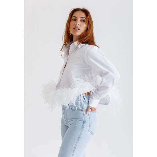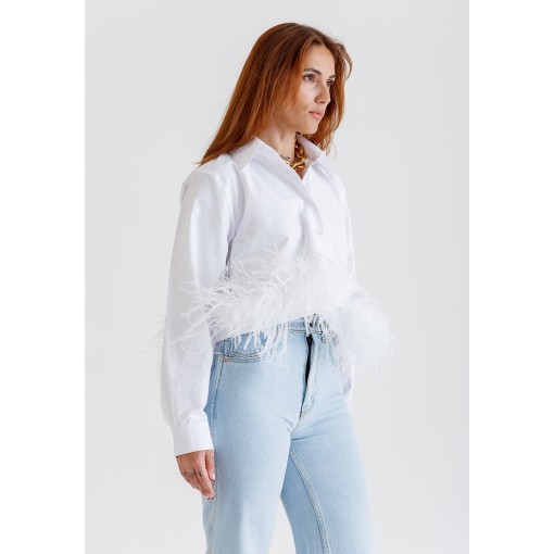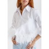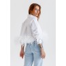 قميص أبيض قصير مزين بالريش