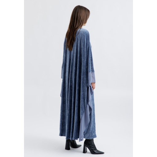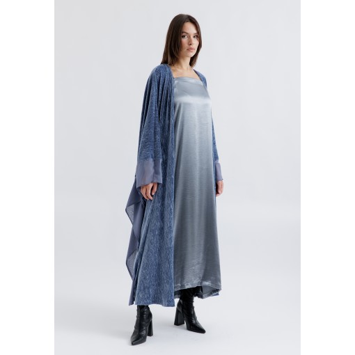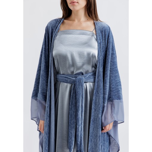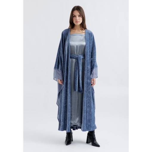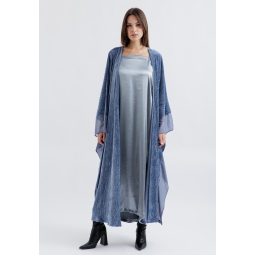 Baby Blue Velvet Belted Bisht with Satin Dress Set