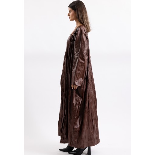 Brown Crinkled Leather Dress & Bisht Set