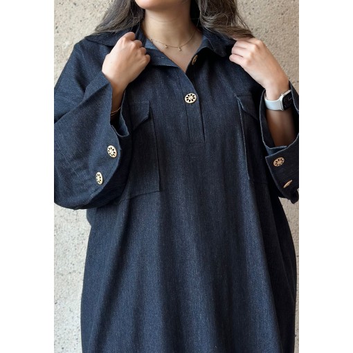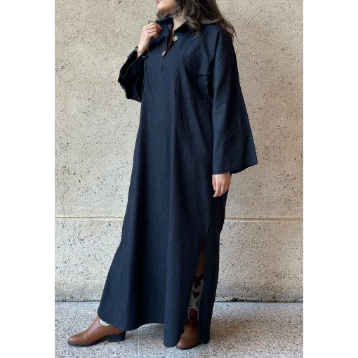 • Fabric: Dark denim.