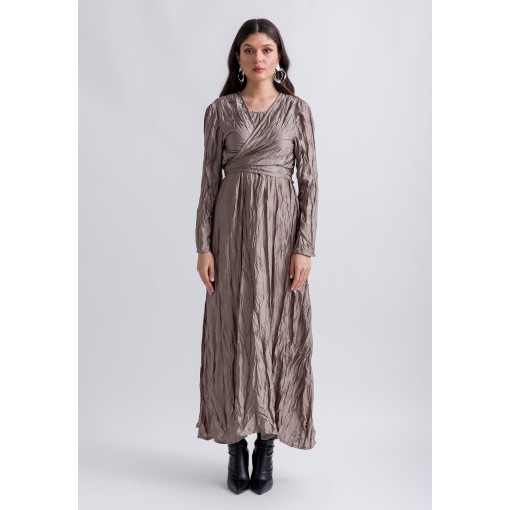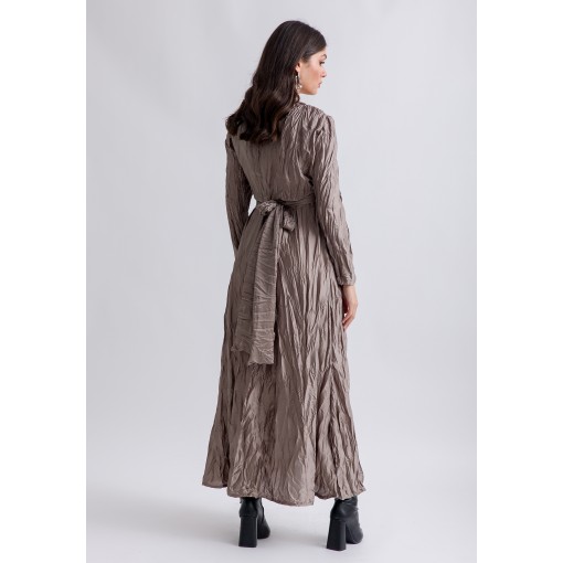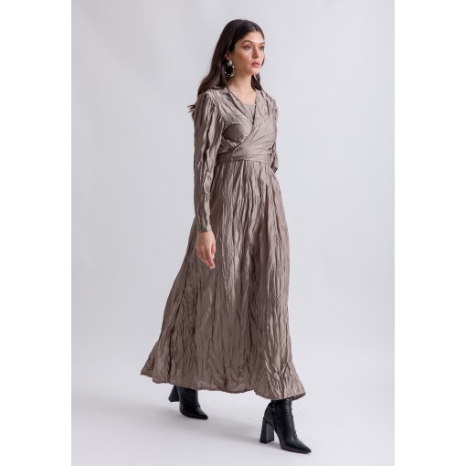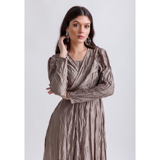• Khaki Crinkled Sleeveless Dress and Crop Tie Jacket 2 Piece( set - unlined)