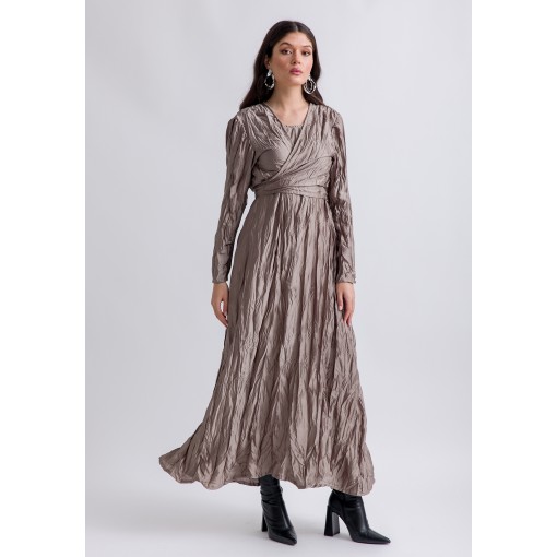 Khaki Crinkled Sleeveless Dress and Crop Tie Jacket 2 Piece