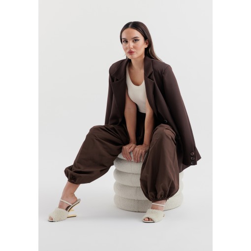 • brown crepe light weight blazer with oversized fit.