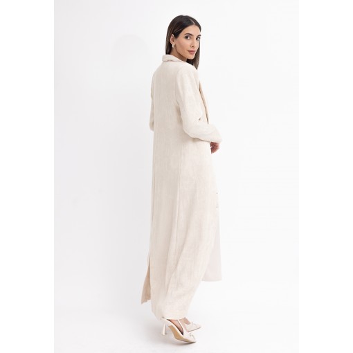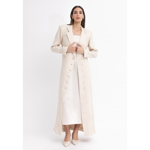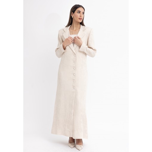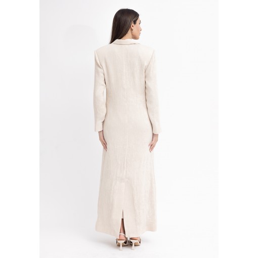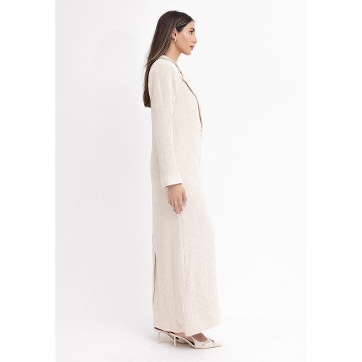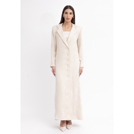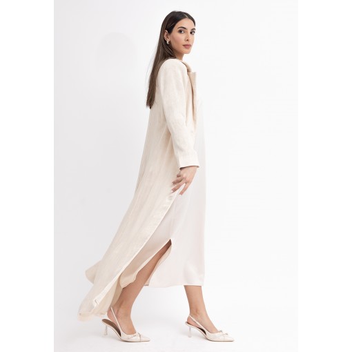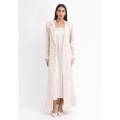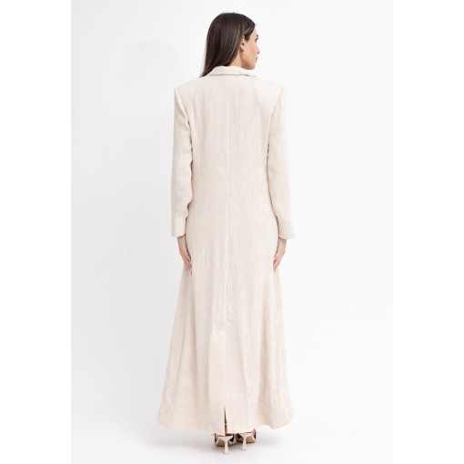 Cream Fitted Maxi Blazer with Silk Dress