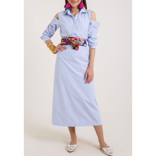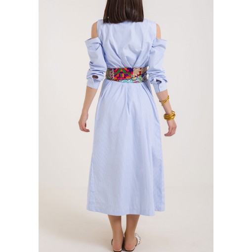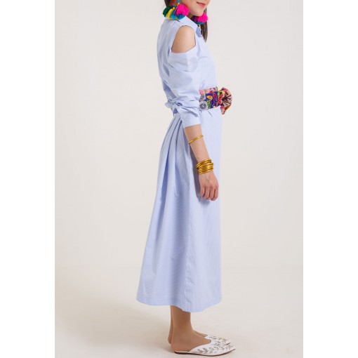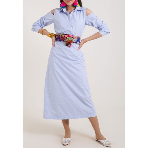 Blue Striped Belted Dress