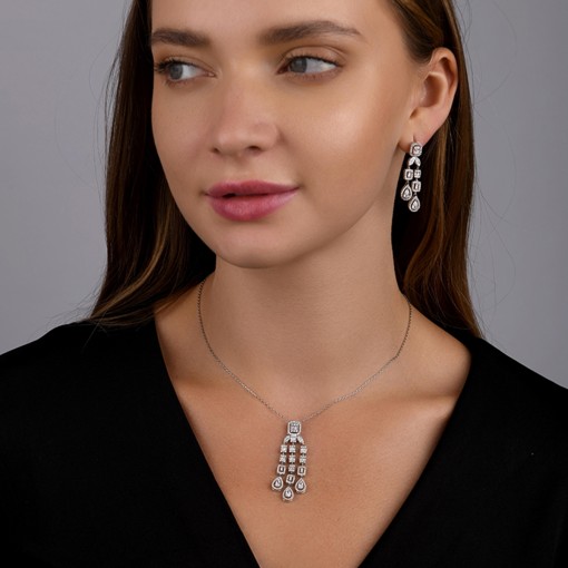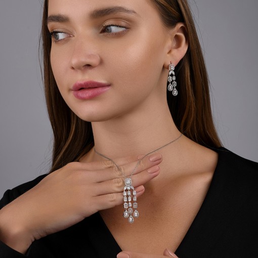 • The Diamond Drop Ensemble captures the essence of elegance and grace with its cascading diamonds that shimmer like starlight in a midnight sky. Each delicate drop, carefully crafted and set in a fluid design, evokes the beauty of falling raindrops, capturing both movement and light in a symphony of brilliance. This ensemble exudes timeless luxury, where every piece is a work of art, effortlessly transforming any occasion into an unforgettable celebration of sophistication. With its radiant sparkle and graceful allure, the Diamond Drop Ensemble is the perfect expression of refined beauty and luminous charm.
