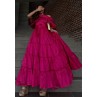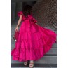 • Flowy A-line silhouette with tiered maxi skirt with multiple gathered layers.