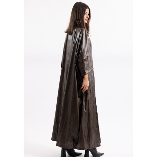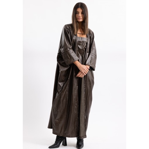 Teal Crinkled Leather Dress & Bisht Set
