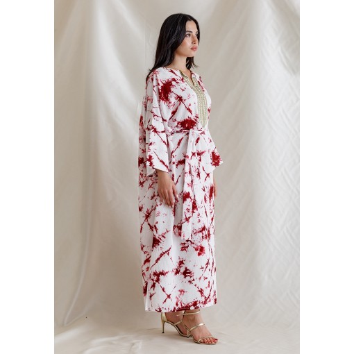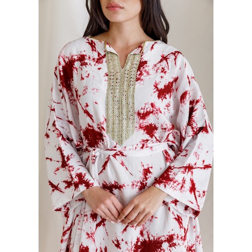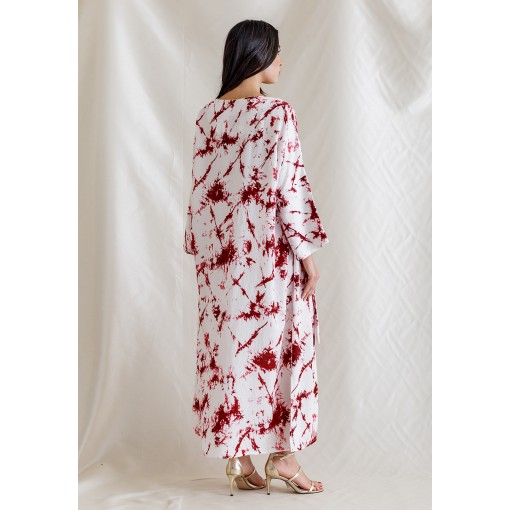 White Kaftan with Red Ink Splash Prints