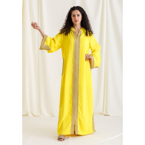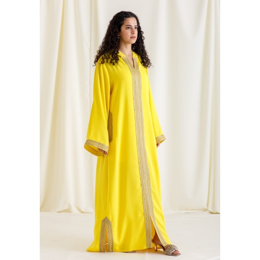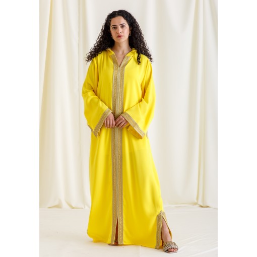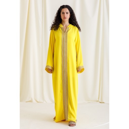 Amber Sun Embroidered Hooded Moroccan Kaftan