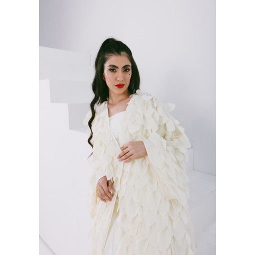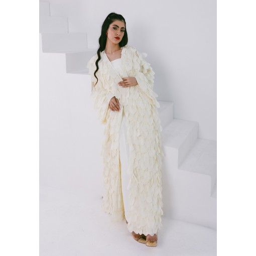 Antique White Silk Layered Abaya in Classic Cut