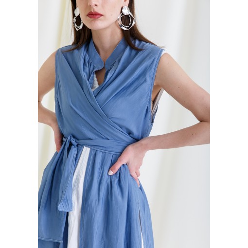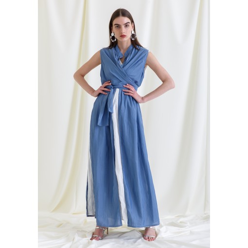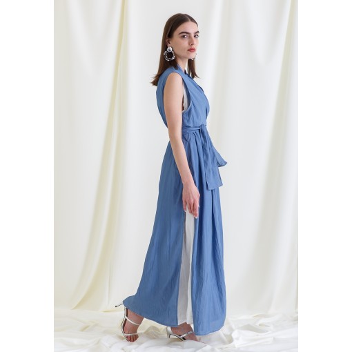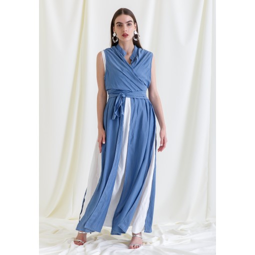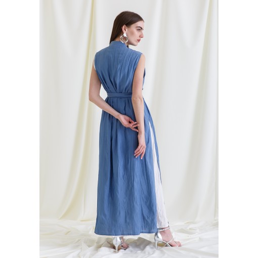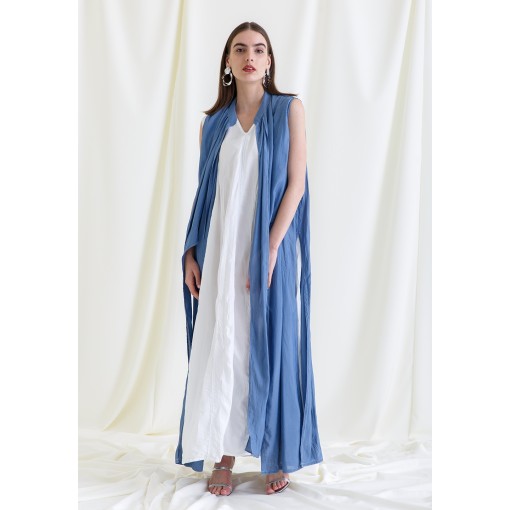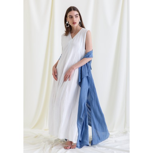 • Two pieces set of a white dress and a blue bisht
