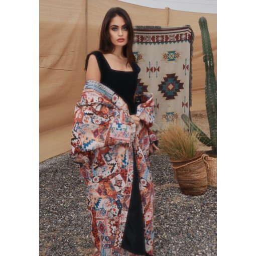 • Pattern: Multi-color bisht with bold Sadu motifs inspired by desert nights and ancestral weaving.
