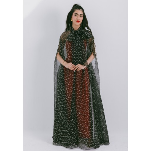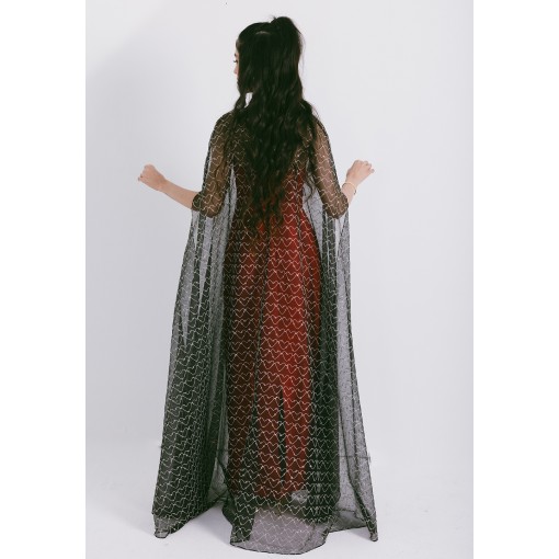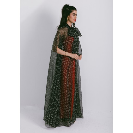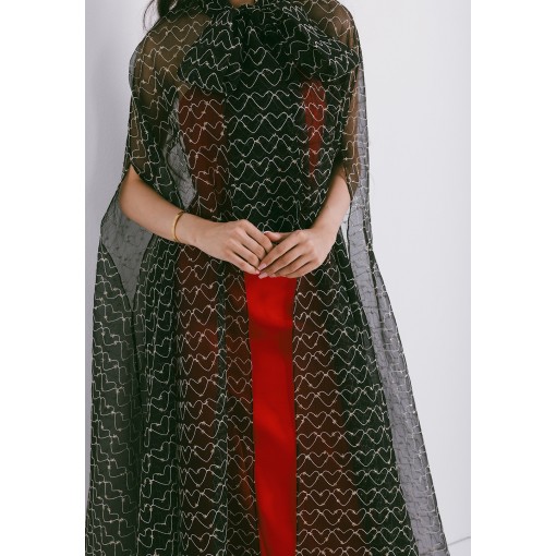 Black Coffee Organza Cape with Neck Bow, Heart Shaped Metallic Threads