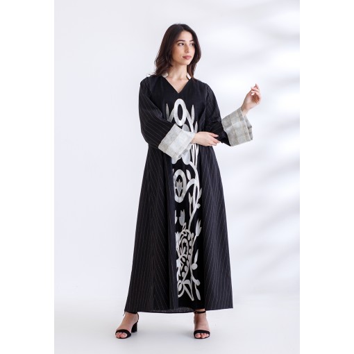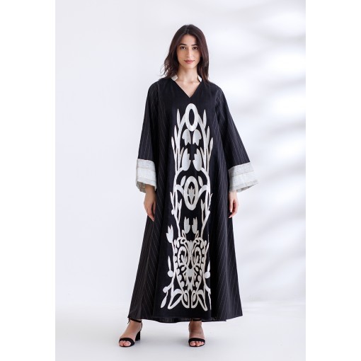 Black Custom Made Embroidery Kaftan