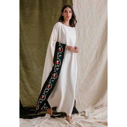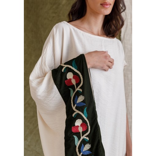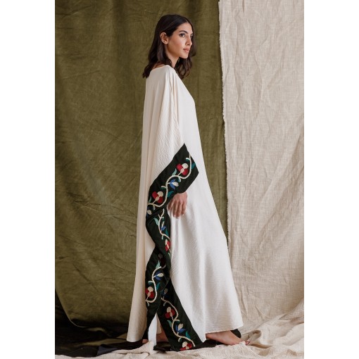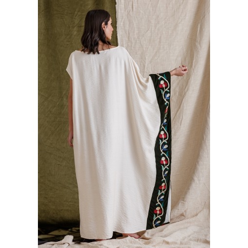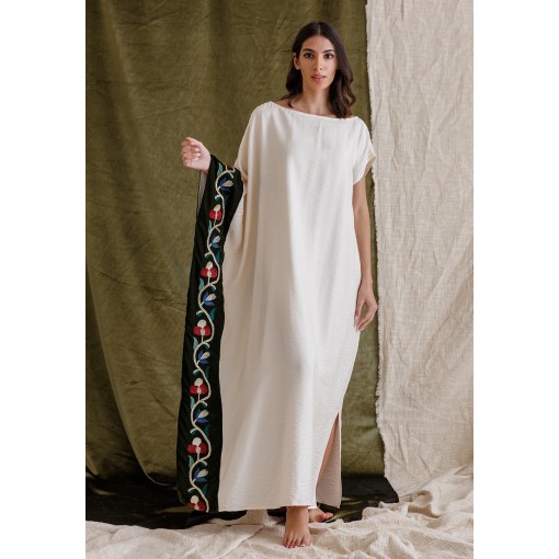 Cream Linen Kaftan with Velvet Panel