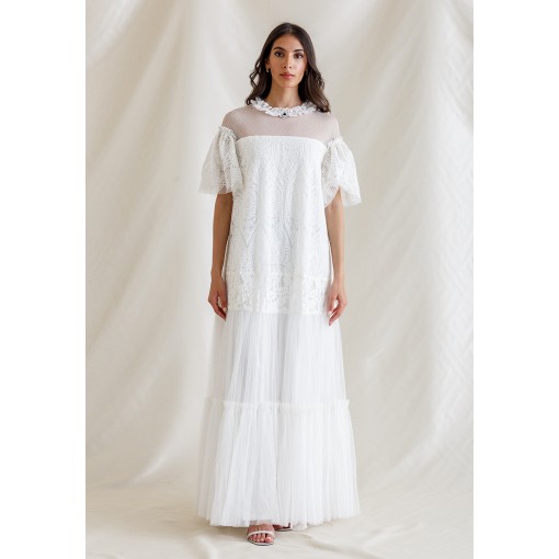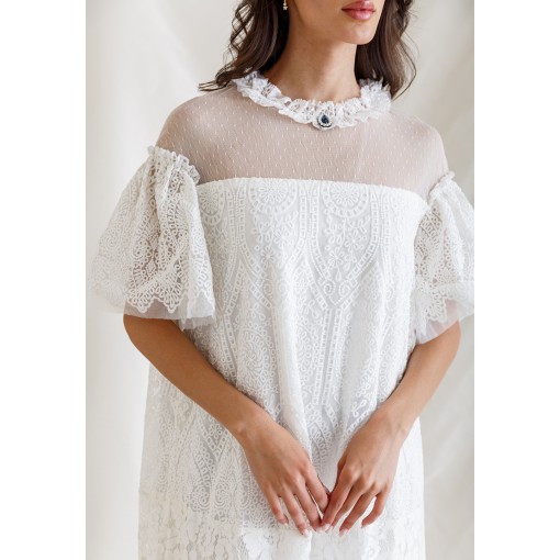 • Round neckline with tulle ruffles.