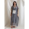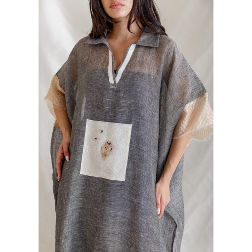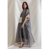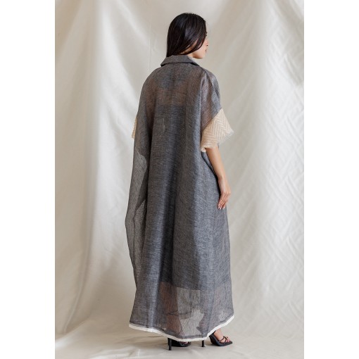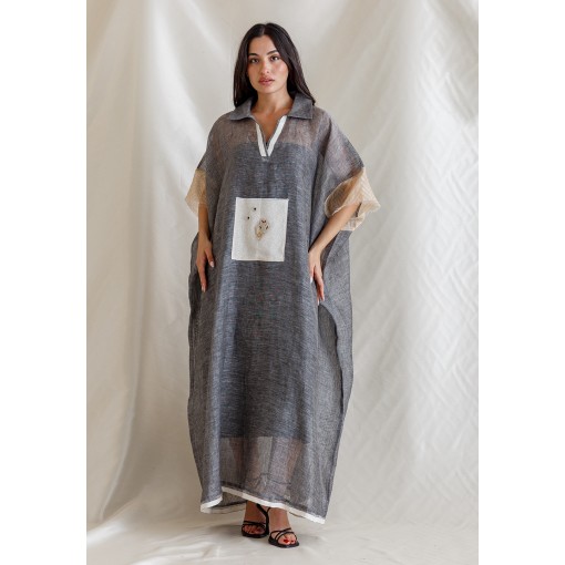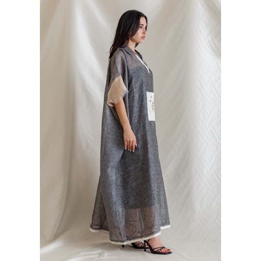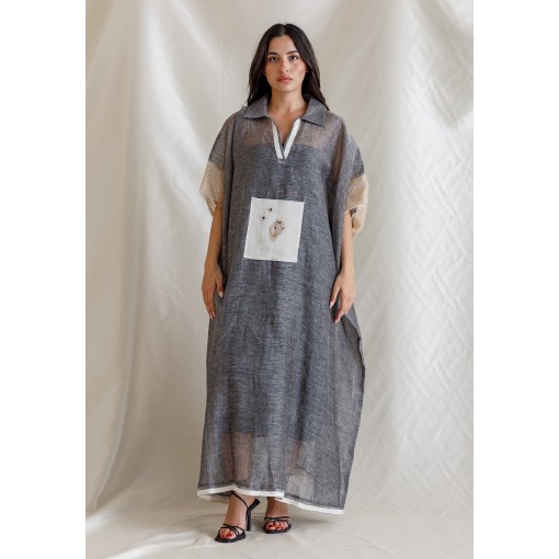 Greyish Black Kaftan with Off-White Details with Bird Embroidered Appliqué
