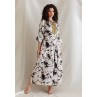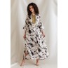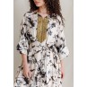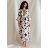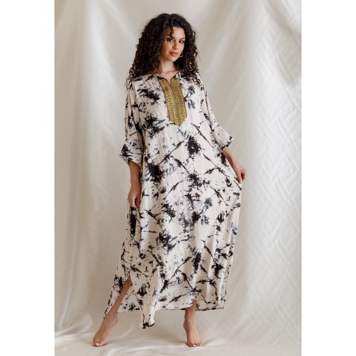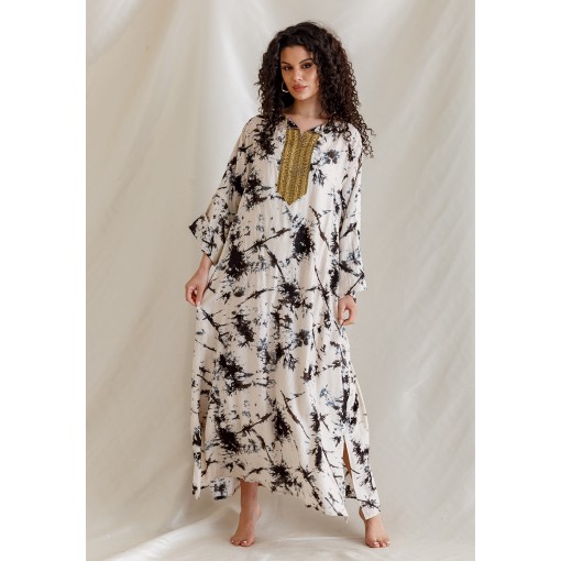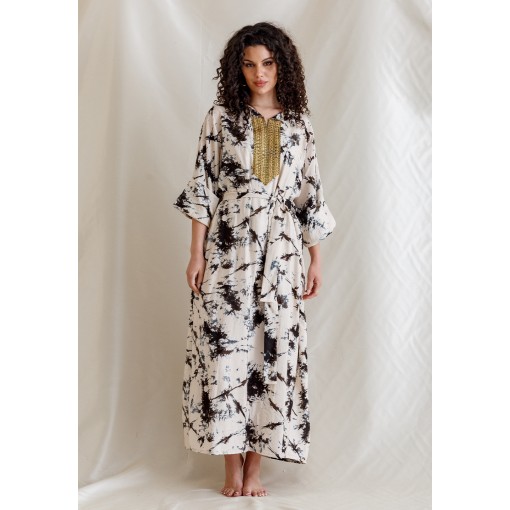 White Kaftan with Black Ink Splash Prints