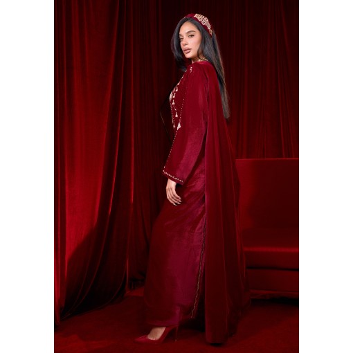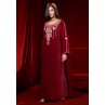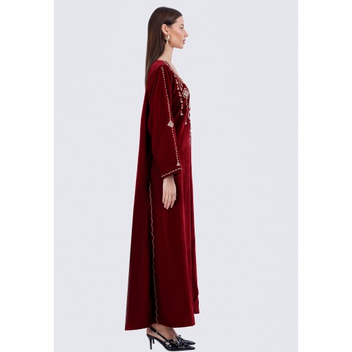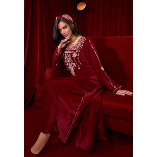 Maroon Pearls Velvet Kaftan