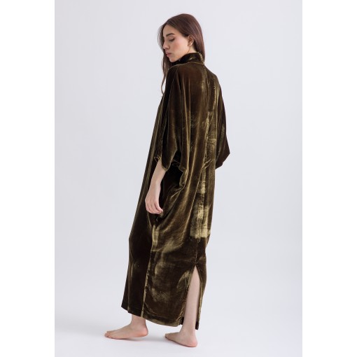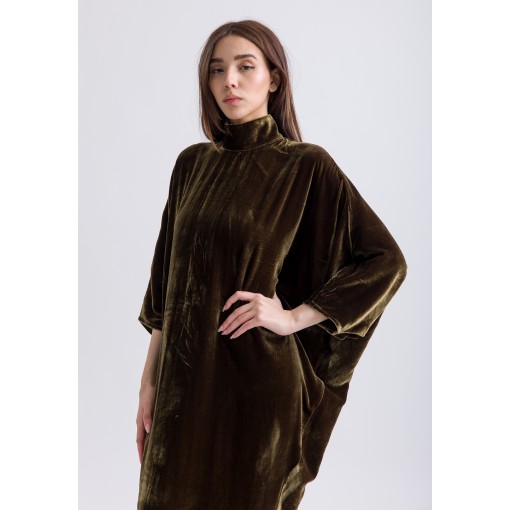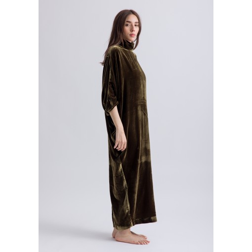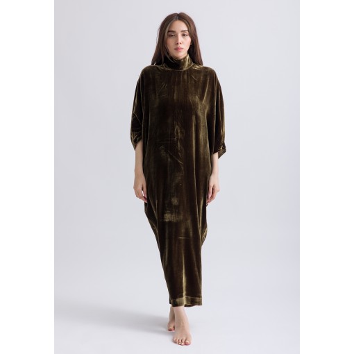 Olive Highneck Velvet Kaftan
