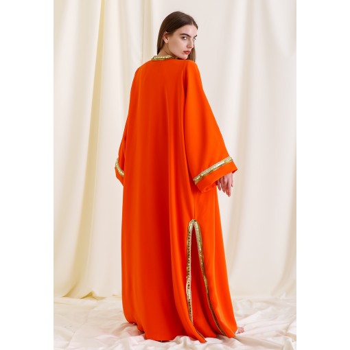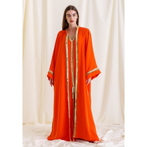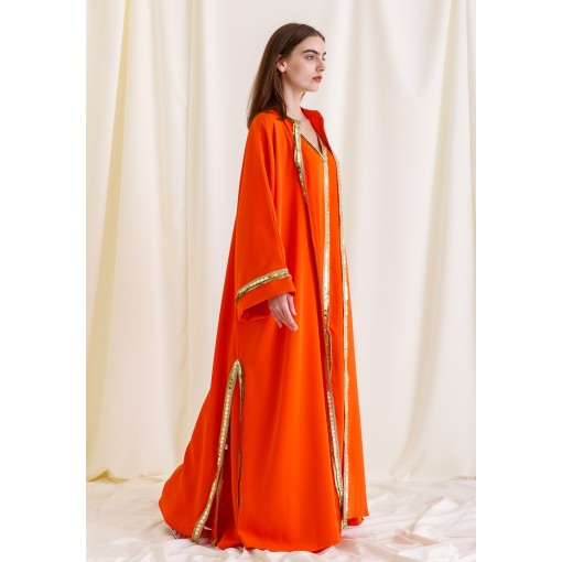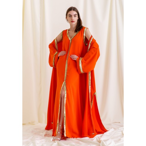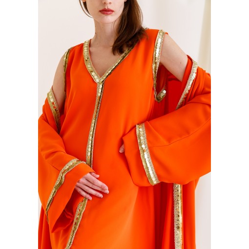 Orange Bloom Embroidered Slit Kaftan Set