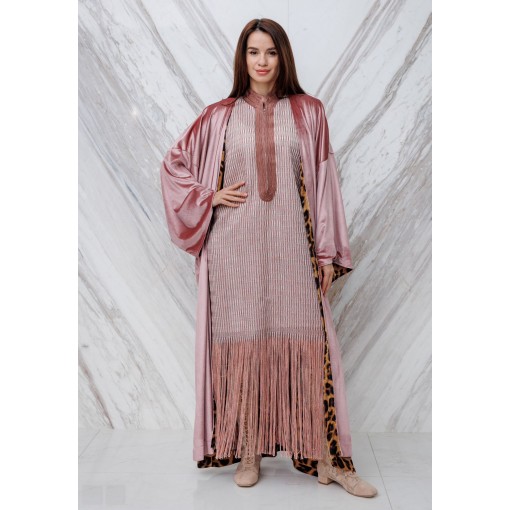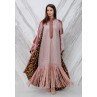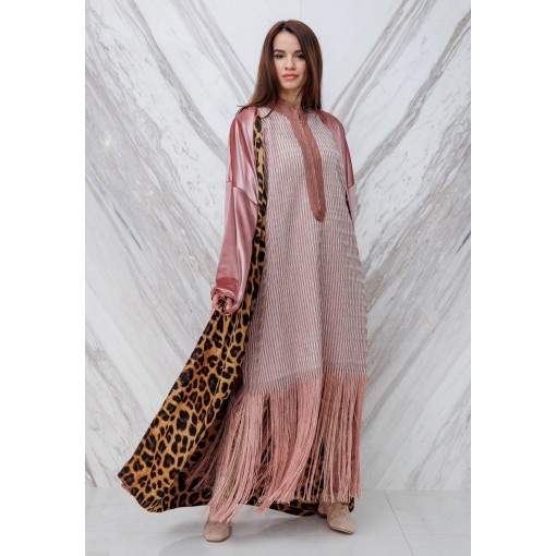 Rose Fringed Kaftan with Leopard Print Bisht
