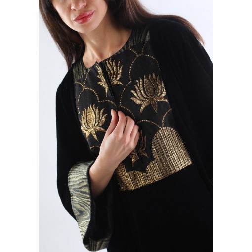 • Embellished with embroidered chest and cuffs with floral pattern in black and gold colors.