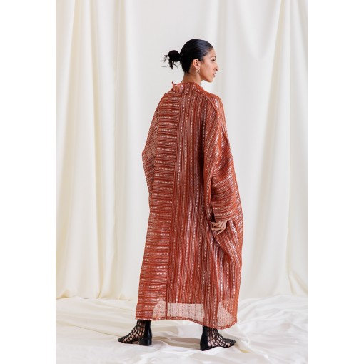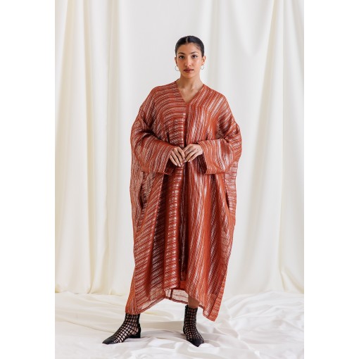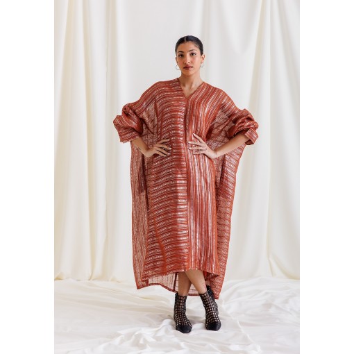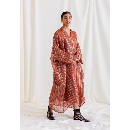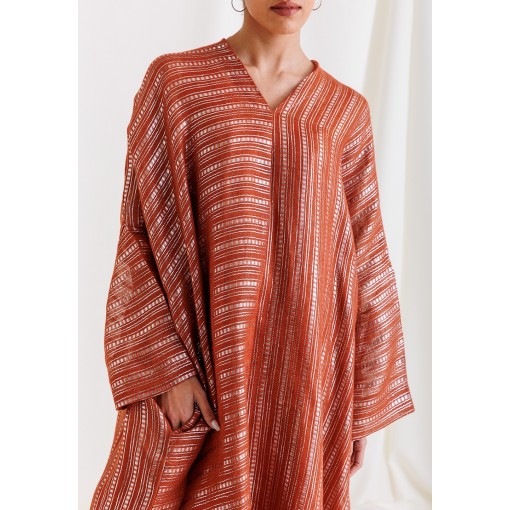 Dark Orange Striped Glitter Kaftan