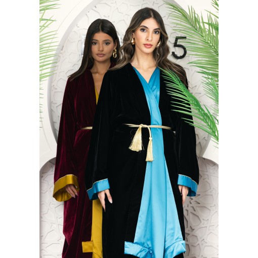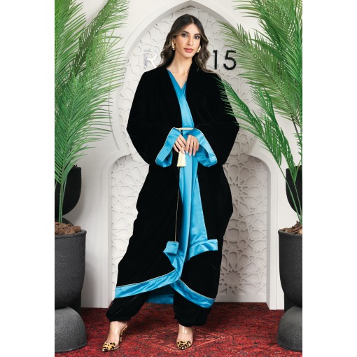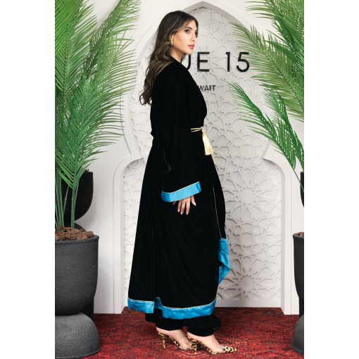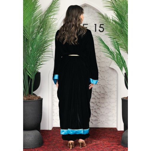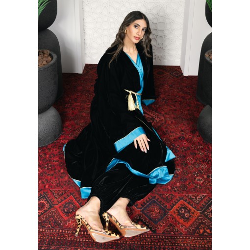 • Black kimono with silky aqua blue color inner.