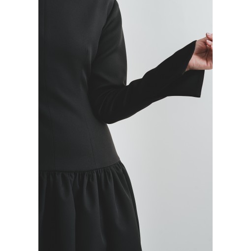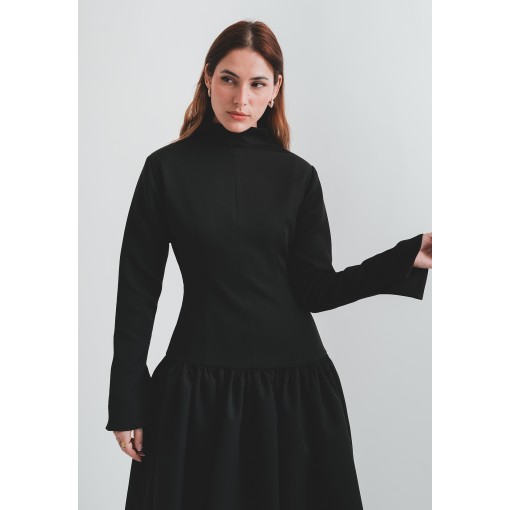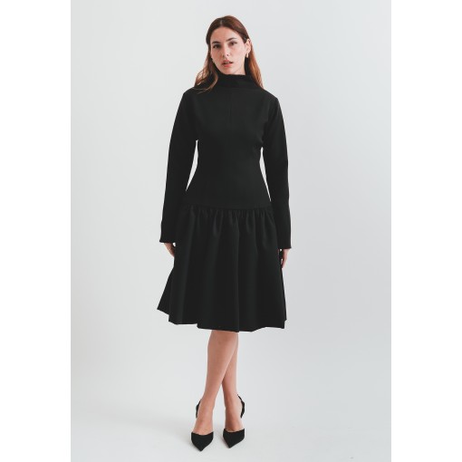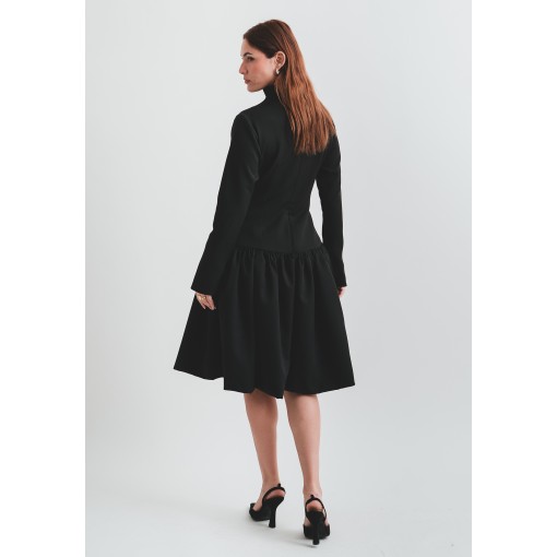• Light Material Black Flowy Dress with Highneck Collar