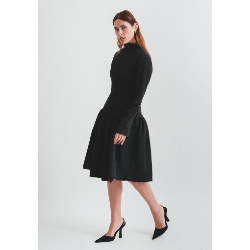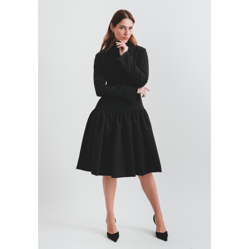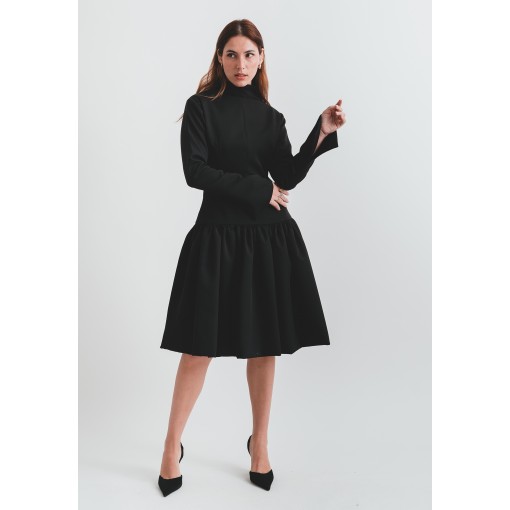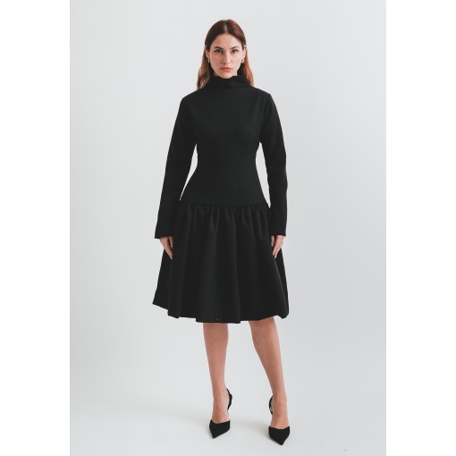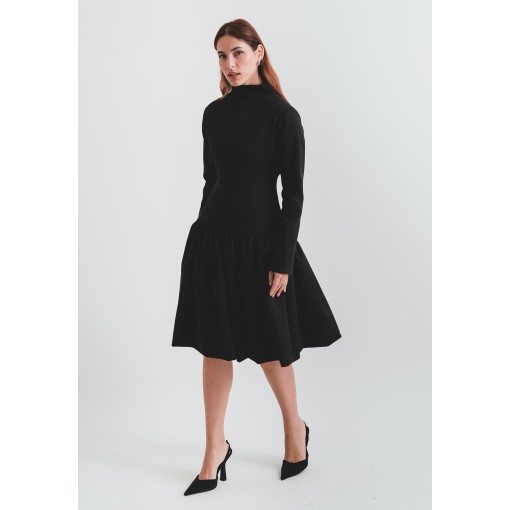 Light Material Black Flowy Dress with Highneck Collar