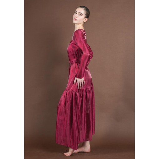 • Relaxed silhouette with an asymmetrical ruched hem.