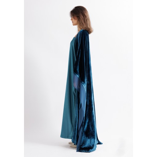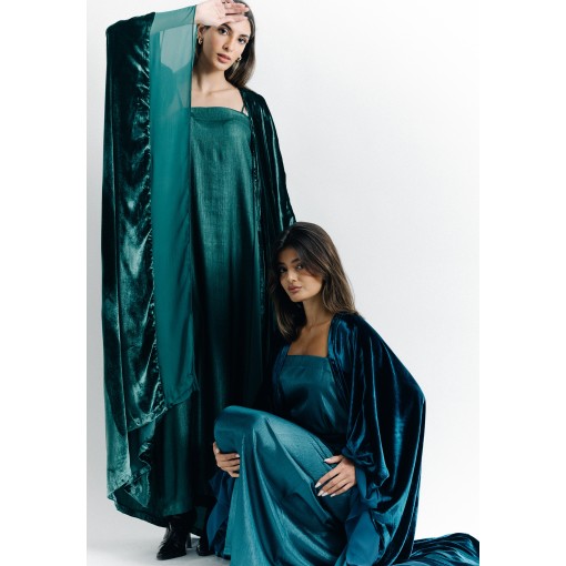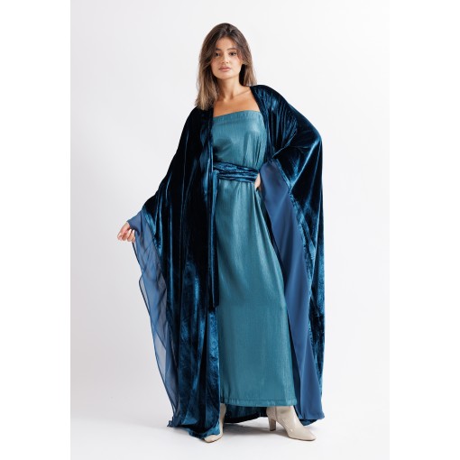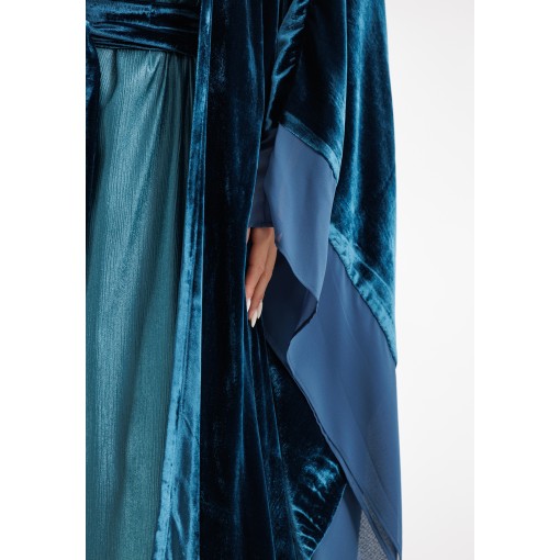 Metallic Turquoise Velvet Belted Bisht Set