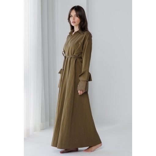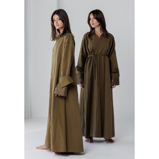Olive Warp Belted Kaftan